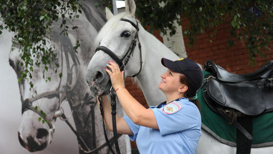 Кавалерист Виктория Духина не только полицейский, но и красавица, спортсменка и победитель смотра художественной самодеятельности. Я застал героиню в 1-м оперативном полку, когда она готовила своего питомца по кличке Жребий, расчесывая ему гриву. — Он уже возрастной конь, 19 лет, — рассказывает Виктория. — Многих уже «списывают» в этом возрасте. Но Жребий по всем показателям проходит ежегодную комиссию, и я надеюсь, что мы с ним еще послужим… В свободное время у Вики сложился дует со своей напарницей Оксаной Ворониной, с которой они подготавливают вокальные номера и выступают на смотрах художественной самодеятельности. В прошлом году становились даже лауреатами. А сейчас у Виктории Духиной напряженная пора — готовится выступать на показательных выступлениях во время открытия конкурса духовых оркестров «Спасская башня».