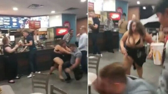 Колоритная и очень экспрессивная жительница США избила в «Макдональдсе» мужчину, который сделал замечание о ее весе. Powerlifter vs Crossfitter 😳😳😳👉 www.LiftingLegends.com Posted by Gym Fail Nation on Wednesday, August 8, 2018 Когда девушку задержали, она рассказала, что избитый оскорбил не только ее, но и подругу, с которой она стояла в очереди за бургером. По ее словам, мужчина заявил, что им двоим не стоит питаться фастфудом при таких пропорциях тела. Оскорбленная девушка не стала себя сдерживать и набросилась на бедолагу всем своим весом, не оставив ему шанса хотя бы встать на ноги. При этом ее противник был довольно крепкого телосложения. За технику боя в соцсетях девушку окрестили «бойцом рестлинга». Поначалу все это выглядело довольно комично, однако когда недовольная дама начала душить своего обидчика, очевидцы решили спасти мужчину. Усилием нескольких человек ее удалось оттащить, после чего в заведение вызвали полицию.