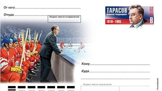 «Почта России» ввела в обращение карточку с оригинальной маркой, посвященную 100-летию со дня рождения легендарного российского тренера хоккейного клуба ЦСКА и сборной СССР Анатолия Тарасова. Об этом сообщается в пресс-релизе «Почты России». На марке изображён портрет прославленного наставника, а на основном изображении находится тренер во время хоккейного матча. Тираж карточки составляет 11 тыс. экземпляров. 10 декабря исполняется 100 лет со дня рождения Тарасова. Во вторник в Госдуме состоялось открытие выставки в честь столетия тренера. В 1974 году Тарасов был введён в Зал хоккейной славы в Торонто. В 1997 году в числе первых введён в Зал хоккейной славы Международной федерации хоккея (IIHF).