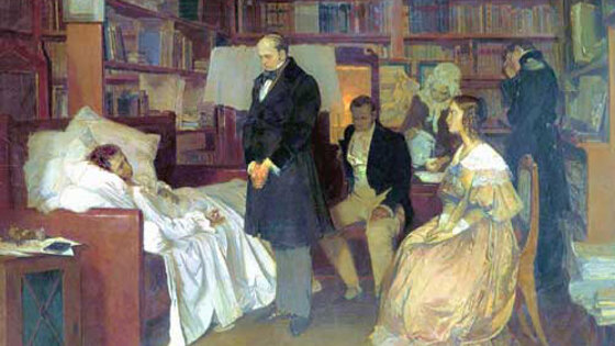29 января (10 февраля) 1837 года, скончался после ранения на дуэли Александр Сергеевич Пушкин, которого сегодня называют «солнцем русской поэзии». Что же привело к этой трагедии, и какими были последние дни великого поэта? Анонимки и дуэль 4 (16) ноября 1836 года Пушкин и несколько его друзей получили по почте анонимный пасквиль на французском, под заголовком: «Патент на звание рогоносца». Содержание его было таково: «Кавалеры первой степени, командоры и кавалеры светлейшего ордена рогоносцев, собравшись в Великом Капитуле под председательством достопочтенного великого магистра ордена, его превосходительства Д.Л. Нарышкина, единогласно избрали г-на Александра Пушкина коадъютором великого магистра ордена рогоносцев и историографом ордена. Непременный секретарь граф И. Борх». На что намекали эти строки, гадать не приходилось. Речь шла о романе, якобы вспыхнувшем между Натальей Николаевной Пушкиной и поручиком-кавалергардом Жоржем Дантесом, приемным сыном посланника Нидерландов, барона Луи Геккерна. По крайней мере, об этом в последнее время ходили упорные слухи. Пушкин тотчас же отправил Дантесу вызов на дуэль. Однако в то же время Дантес предложил руку и сердце родной сестре Натальи Николаевны – Екатерине Николаевне. Близким удалось отговорить Пушкина от дуэли с будущим родственником… Бракосочетание Жоржа Дантеса и Екатерины Гончаровой состоялось 10 января. Меж тем слухи по поводу любовной связи между Дантесом и Натали Пушкиной все продолжали распространяться. 26 января Пушкин послал барону Геккерну письмо, в котором сообщал, что отказывает ему и его приемному сыну от дома. В ответ пришел вызов на дуэль. Но барон не мог драться с Пушкиным сам, так как это стало бы угрозой его дипломатической карьере: эта роль отводилась Дантесу. Встреча была назначена на 27 января на Черной речке, возле Комендантской дачи. Первым по жребию выстрелил Дантес и тут же нанес Пушкину серьезную рану: пуля раздробила бедренную кость и угодила в живот. Поэт упал, однако все равно попытался сделать ответный выстрел, сидя на земле. Он легко ранил Дантеса в правую руку, а затем потерял сознание от кровопотери… Его на руках перенесли в извозчичьи сани, затем у Комендантской дачи пересадили в карету, которую послал на место дуэли Геккерн, и отвезли домой, на набережную Мойки, 12. Смерть поэта В последующие дни кровотечение из раны не прекращалось. Пушкин испытывал жажду, тошноту, нарастали боли в области живота. Пульс был слабым. Его бросало то в жар, то в холод, он периодически впадал в состояние забытья. Спасти раненого пытались лучшие петербургские врачи во главе с императорским лейб-медиком Н.Ф. Арендтом, но, как мы знаем, их попытки были напрасными. Через два дня после дуэли, 29 января 1837 года, больному стало трудно дышать, появились галлюцинации. Но сознание оставалось относительно ясным. Арендт не стал скрывать от Пушкина его состояния. Поэт попрощался с женой и детьми, послал за священником… В 14:45 наступила смерть. В момент кончины Пушкина в его доме были остановлены часы. Поэт и царь Трагедия усугублялась тем, что дуэли в то время были под запретом. В частности, К.А. Данзаса, который был секундантом Пушкина, могли арестовать за участие в дуэли. Поэтому, уже находясь на смертном одре, поэт через Арендта (по другим данным – через В.А. Жуковского) передал император