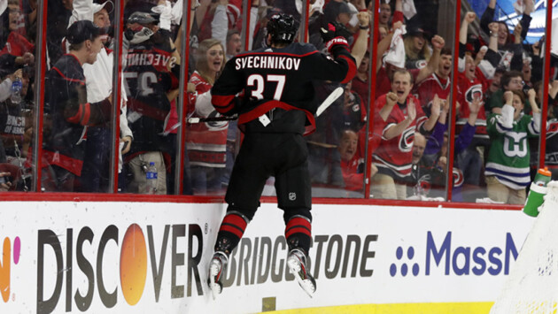 Новичок «Кейнз» внедрялся в состав постепенно, набрал обороты к окончанию сезона, и самое лучше - это то, что в его случае все только начинается! Сезон Андрея Свечникова 2018-2019 в цифрах: Возраст: 18 лет Сезоны в НХЛ: 1 Количество сыгранных матчей: 82 Результативность: 20 голов, 17 ассистов, 37 очков. Среднее время на льду: 14:39 во всех ситуациях; 12:43 в равных составах; 1:55 в большинстве; 0.01 в меньшинстве. Контракт: Действует до окончания сезона 2020-2021. Начальное соглашение на $0.925 в год. Покорение новых высот Виктор Хедман, Дрю Даути, Евгений Малкин, Джек Айкел, Тайлер Сегин, Патрик Лайне, Габриэль Ландескуг – вот игроки, с которыми Андрея Свечникова будут сравнивать в его карьере. Как ни крути, очень многого люди ожидают от любого хоккеиста, выбранного под вторым номером на драфте. Принимая во внимание эти ожидания, сезон 2018-2019 можно расценивать, как солидный старт в долгом путешествии. Свечников принял участие в 82 играх регулярного первенства и в девяти матчах «Харрикейнз» в плей-офф. На протяжении большей части сезона он выступал в третьем сочетании, где зачастую играл в связке с Джорданом Мартинуком и Лукасом Валльмарком. Несколько неожиданная для случая со столь мастеровитым хоккеистом идея выпускать его в третьей связке видится частью глобальной стратегии постепенно ввести Свечникова в свою роль. Вдобавок к тому, что он еще очень юн (Свечников стал первым игроком, рожденным в 2000-х, кто забил гол в НХЛ), в начале сезона еще и проблемы с дисциплиной (атака соперника клюшкой в зоне нападения) не слишком-то позволяли тренерам давать ему игровое время на уровне топ-6 форвардов команды. Кроме того, успехи Майкла Ферланда в начале сезона не способствовали спешке с переводом Свечникова в одно из первых двух сочетаний. По ходу же сезона (и когда продуктивность Ферланда пошла на спад) Свечников начал попадать в топ-6 почаще. Ферланд летом наверняка покинет Роли в статусе свободного агента, так что место в первом или втором сочетании Свечникову, кажется, будет гарантировано. Его 20 голов (четвертый показатель в команде) кажутся еще более впечатляющим результатом, если учесть, что ни один из них он не забил в большинстве (лишь у Себастьяна Ахо при игре в равных составах заброшенных шайб оказалось больше – 23). Он являлся завсегдатаем второй бригады большинства «Кейнз», и перевод в первую в следующем сезоне будет ему в помощь, как и креативность, присущая первому сочетанию, которое рвало и метало в плей-офф. Что касается других факторов, то все указывает на то, что с ним хорошо ладят партнеры, а вне льда он проявляет трудолюбие. Наряду со своими приятелями Дуги Хэмилтоном и Уорреном Фогеле, Свечников был одним из лучших игроков в составе «Кейнз» в первой половине серии против «Кэпиталз». Он забил два гола «Каролины» в матче под номером один, включая эту красоту: Great play(s) by rookie Andrei Svechnikov. (1) comes through neutral zone with speed, protect pucks, drives to net. (2) No idea how Wallmark saw Svechnikov but love the anticipation & way he reads the play to get into high slot for goal. #NHLPlayoffs #StanleyCup #CARvsWSH pic.twitter.com/4zwexxM6is — JJ Santagata (@santageetee) 12 апреля 2019 г. Его здоровье, однако, пошатнула драка с Алексом Овечкиным в третьей игре, которая стала переломным моментом во всей серии. «Кейнз» выиграли этот матч, а также три из последующих четырех, выбив «Кэпс» в семи встречах. Увеличение игрового времени в следующем сезоне должно позволить Свечникову замахнуться на 30 голо