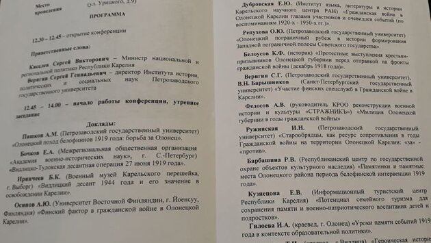 В Олонце открылась научно-практическая конференция "Военная история Олонецкого района: 1919–1944 гг". Она посвящена 100-летию Видлицкого десанта 1919 года, положившего начало разгрому белофинской интервенции в Южной Карелии, и 75-летию Тулоксинского десанта 1944 года, сыгравшего важную роль в изгнании финской армии из Южной Карелии и выходе Финляндии из войны. Конференция продлится два дня. Сегодня 14 научных докладов представляют известные ученые из ПетрГУ, университета Восточной Финляндии, представители и эксперты музеев и центров, краеведы из Олонца и Видлицы. В числе тем выступлений историков, например, такие: "Старообрядцы как ресурс сопротивления в годы Гражданской войны на территории Олонецкой Карелии: «за» - «против», "Финский фактор в гражданской войне в Олонецкой Карелии", "Гражданская война в Олонецкой Карелии глазами участников и очевидцев событий (по воспоминаниям 1920-х - 1950-х гг.) и др. А открыл мероприятие участник боевых действий времен Великой Отечественной войны Анатолий Щербаков. Он освобождал Олонецкий район. Я участвовал здесь в боях, был командиром взвода разведки. Каждую минуту падало на землю 200 снарядов, - рассказал участникам конференции ветеран. - В боях мы тут потеряли очень много наших воинов. Наша дивизия 98-ая оставила убитыми здесь 1008 солдат. Это были в основном ребятишки 19-летние. Безмерно мне их жаль, но войны без жертв не бывает. 2500 раненых было . С тяжелыми боями нам пришлось освобождать вашу территорию". Анатолий Павлович в 1941 году ушел добровольцем на фронт. В 1944 году его перебросили на Карельский фронт. В ходе продолжительных кровопролитных боев за город Олонец был ранен и контужен. За проявленное мужество при освобождении Олонца награжден орденом Красной Звезды. После выздоровления его направили в Польшу. Войну он закончил в 1945 году в госпитале Будапешта. После войны Анатолий Щербаков связал свою жизнь с армией. Анатолий Павлович живёт в Курске, осенью ему исполнится 94 года. Несмотря на возраст и расстояние, в Карелии он бывает раз в год. Я к вашей республике уже прирос основательно. Обращаюсь всегда на выступлениях так: "Здравствуйте, дорогие земляки". Начиная с 1949 года, мы посещали вас каждые 5 лет. В 2014 году Олонецкие власти мне предложили приезжать каждый год, - поделился почетный житель Олонца. - Туристы поют "Долго будет Карелия сниться", а я говорю, что она мне не снится, я здесь живу, начиная с 1944 года". Завтра Анатолий Павлович вместе с участниками конференции примет участие в памятных мероприятиях в селе Видлица. Там будет открыт памятный знак на месте высадки десанта 1919 года и поклонный крест на месте гибели видлицких коммунаров в 1919 году. Фото с сайта geocaching.su Видео Елены Кузнецовой