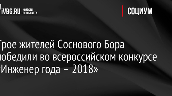 Трое жителей Соснового Бора Ленобласти победили в первом туре всероссийского конкурса «Инженер года – 2018». В конкурсе «Инженер года – 2018» приняли участие 70 тыс. специалистов из 58 регионов России. По результатам конкурса в номинации «Системы и технологии обеспечения безопасности производства» победителями стали Павел Анфилофьев и Александр Нечаев, представляющие Научно-исследовательский институт им. А. П. Александрова. В номинации «Атомная энергетика» лучшим стал специалист с более чем 20-летним стажем Дмитрий Галин. «Инженер года – 2018» – всероссийский конкурс, цель которого заключается в выявлении ценных инженерных кадров и распространении передового опыта.