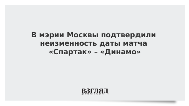 В мэрии Москвы подтвердили неизменность даты матча «Спартак» – «Динамо»