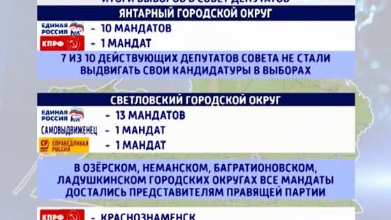33 жалобы поступило в региональный избирком в процессе вчерашних выборов. Четыре нашли подтверждение. Жители отдавали свои голоса за депутатов окружных советов в девяти муниципальных образованиях. Работало 48 избирательных участков. Больше всего избиралось народных избранников в Янтарный и Светловский городские округа. Практически все из 53 мандатов достались представителям «Единой России», два у «КПРФ» и по одному у самовыдвиженца и справедливоросса. Самое грубое и бессмысленное нарушение, по словам представителей ЦИК, было зафиксировано в Янтарном. Там женщина пыталась вбросить 10 бюллетеней за одного кандидата. ИНЕССА ВИНЯРСКАЯ, ПРЕДСЕДАТЕЛЬ ИЗБИРАТЕЛЬНОЙ КОМИССИИ КАЛИНИНГРАДСКОЙ ОБЛАСТИ: — Ничего аккуратно и тайно, у тех, кто хотел это сделать, там однозначно не получилось бы. Факт зафиксирован, действительно он имел место, правоохранительные органы этим делом сейчас занимаются. Они задержали избирателя, которые пыталась эти 10 бюллетеней туда вложить. В Черняховске на улице Чайковского ликвидирован пожар на территории бывшего военного городка. Горела крыша казарменного комплекса, постройки середины 19 века. Трёхэтажные здания не эксплуатировались. К тушению возгорания были привлечены три пожарных расчёта. Пострадавших нет.
