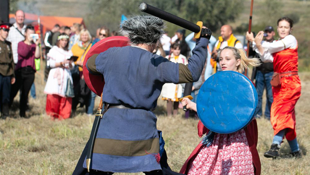 В Ульяновской области завершился первый всемирный фестиваль единоборств ТАФИСА, в котором приняли участие спортсмены из 20 стран. Одним из самых ярких событий мероприятия стала историческая реконструкция русских боевых искусств, прошедшая в селе Арское под Ульяновском. Село Арское, расположенное недалеко от областного центра, было неслучайно выбрано местом проведения праздничного мероприятия. Основанное в 1649 году, на год позже Симбирска казаками Арское служило надежной защитой городу. Кроме того, село славится величественным храмом Богоявления. На большой лугу, между храмом и речкой Сельдь развернулось красивое зрелище, собравшее более тысячи зрителей. Почетными гостями мероприятия стали Губернатор Ульяновской области Сергей Морозов, президент Международной ассоциации спорта для всех (ТАФИСА) Джу-Хо Чанг, первый вице-президент Союза машиностроителей России, депутат Государственной Думы Владимир Гутенёв, посол фестиваля, председатель комитета Совета Федерации по бюджету и финансовым рынкам Сергей Рябухин. Перед гостями Фестиваля выступили представители десяти исторических клубов Ульяновска, Татарстана и Самарской области. Были показаны эпизоды русского боя. Облаченные в доспехи древнерусских воинов и рыцарей показали схватку на мечах. Затем в дело вступили казаки, продемонстрировавшие умение держаться в седле, а также владение шашкой, пикой и карабином. Нужно было срубить лозу так, чтобы надетая на нее шапка не упала на землю, а опустилась на обрубок. Или разрубить пластиковую бутылку с водой так, чтобы оставшаяся часть устояла на подставке. И все это на скаку. "Благодаря таким реконструкциям жители нашего региона, гости нашего замечательного фестиваля, смогут познакомиться с историей русской земли, нашего народа. Перед нами стоит задача заниматься патриотическим воспитанием детей и молодёжи, и подобные мероприятия помогают нам решать эту задачу", — заявил губернатор Ульяновской области Сергей Морозов. Реконструкторы показали свое умение обращаться с оружием, познакомили с такими его видами, как пернач, бебут и бердыш. Зрители увидели насколько грозной в руках бойца может быть дубина, против которой не устоят ни одни латы. Были показаны и элементы современного рукопашного боя. После шоу зрители могли сами примерить доспехи и казачью амуницию, собрать и разобрать автомат или карабин, пострелять из лука. Можно было даже устроить поединок. Естественно, с использованием не боевых, а облегченных и безопасных меча и щита. Зрителям предлагалось познакомиться с бытом и кухней казаков, увидеть, как работают гончары и кузнецы. Все желающие могли сесть за гончарный круг или взять в руки молот.