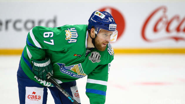 «Салават» – «Авангард». Умарк был удален за симуляцию, затем он упал на лед после имитации удара Бондарева