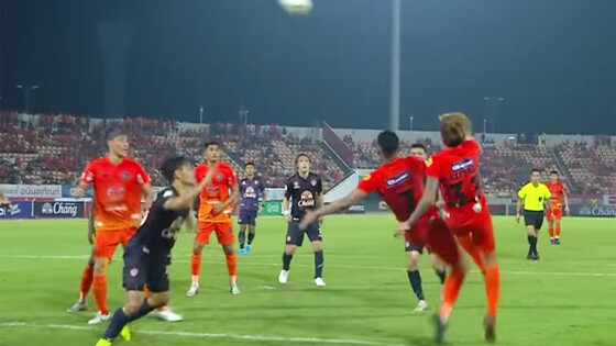 Видео, удивительный гол двойным ударом через себя в чемпионате Таиланда