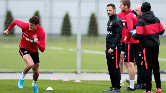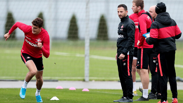 18 октября в Москве на базе в Тушино «Спартак» провёл открытую тренировку перед матчем с казанским «Рубином». К матчу команду красно-белых готовит 34-летний специалист Доменико Тедеско, который заключил контракт со «Спартаком» до мая 2021 года. Его предыдущим клубом был гельзенкирхенский «Шальке-04». Первый матч под руководством Тедеско «Спартак» проведёт завтра, 19 октября, на своём поле с «Рубином». Начало встречи — 16:30 по московскому времени. «Спартак» располагается на 12-й строчке турнирной таблицы российской Премьер-Лиги. В 12-м туре московская команда потерпела поражение от «Краснодара» со счётом 1:2. Лучшие кадры с открытой тренировки «Спартака» — в фоторепортаже специального фотокорреспондента «Чемпионата» Дмитрия Голубовича.
