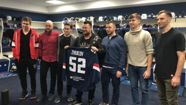 Об этом сообщает пресс-служба «Торпедо». Хоккеисты пригласили Сергея Жукова в гости перед концертом группы в Нижнем Новгороде 25 октября. Главный тренер Дэвид Немировски и хоккеисты Михаил Варнаков, Дамир Жафяров, Михаил Орлов и Кирилл Ураков устроили Жукову экскурсию по раздевалке, и подарили именной свитер и клюшку, а также сфотографировались и записали видео. Жуков спел припев песни «Крошка моя». Фото и видео ХК "Торпедо"