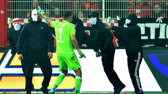 Кипер немецкого клуба «Унион» лично прогнал фанатов, выбежавших на поле