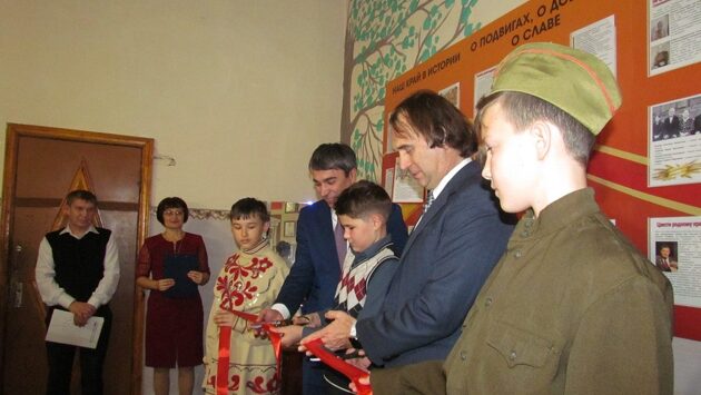 В Зауралье сенатор Лисовский в сельском клубе торжественно открыл стенд