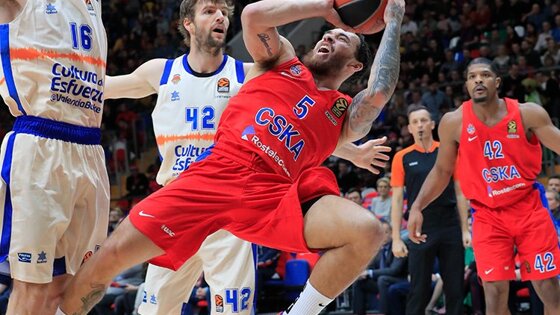 Травмы продолжают замедлять чемпионскую поступь армейцевЦСКА наконец-то вроде бы набрал ход и начал оправдывать статус действующего чемпиона Евролиги. Подопечные Димитриса Итудиса перед матчем имели четырехматчевую беспроигрышную серию, и, обыграв последовательно Реал и Басконию, были уверены в себе и в преддверии последней встречи с испанскими оппонентами. Однако у москвичей снова пополнился лазарет. Сначала Семен Антонов слег с температурой, а прямо на разминке ногу подвернул Андрей Воронцевич, что также оставило ветерана вне заявки на игру. Впрочем, и в оптимальном составе против Валенсии никогда не бывает просто. Перед матчем Итудис выделил сильные стороны будущего соперника. Мы играли с Валенсией очень давно в самом начале первого круга Евролиги. Сейчас это совсем другая команда. Она играет по-другому, более эффективно, у них глубокий состав, есть хорошие игроки на каждой позиции. Наш соперник может действовать разнообразно, выставлять маленькую или высокую пятерку. К тому же, Валенсия, как и любая испанская команда, любит скоростную игру. Другие ее сильные стороны подбор и атлетизм. В целом, это достойный соперник, который заслуживает нашего внимания на протяжении всех 40 минут, приводит слова тренера официальный сайт армейцев.Команда Жауме Понсарнау приехала в Москву в прекрасном настроении, уже имея в багаже победы над Химками и Зенитом, и надеялась завершить российское турне со стопроцентным результатом. Хорошей новостью для испанцев стало и возвращение в строй лидера команды в этом сезоне Бояна Дублевича, набирающего почти 15 очков в среднем за матч в главном европейском турнире. Дебют игры остался за ЦСКА. Йоханнес Фойгтманн стартовал с места в карьер, отправив две первые посылки в кольцо испанцев, сразу обозначив, кто фаворит этой игры. Однако Валенсия, имеющая третье по результативности нападение в турнире, не собиралась отпускать хозяев далеко. Сэм Ван Россом, Аарон Доорнекамп и вернувшийся со свежими силами Дублевич организовали качественный отпор армейскому снайперу. После этого случился один из самых красивых моментов игры. Майк Джеймс получает мяч, обыгрывает защитника, входит в трехсекундную зону и вколачивает сверху так, что, казалось, в ушах зазвенело у всей оборонительной линии гостей. Валенсия изо всех сил старается держать красно-синих в поле зрения, уповая на хорошую реализацию средних бросков, но на по итогам первой четверти впереди все же оказывается ЦСКА 20:17. На второй игровой отрезок испанцы выходят более заряженными. Они начинают в своем фирменном стиле выпускать град бросков по кольцу соперника, и, казалось, ловят тот самый кураж, при наличии которого Валенсия может обыграть кого угодно, и вот, догонять надо уже хозяевам. Однако показатель класса ЦСКА в том, что помимо лидеров, в команде всегда найдутся те, кто в трудный момент сможет повести за собой. И тут на первый план выходит Ховард Сент-Рос. Кубинский форвард записывает на свой счет шесть очков, три передачи и один перехват, тем самым вместе с Джеймсом организовывает погоню за разыгравшимися испанцами, а американец в концовке забивает издали, уводя свою команду на большой перерыв с теми же плюс 3. Во второй половине сценарий игры не изменился. Валенсия старается догнать хозяев, но плохая реализация бросков из-за дуги и традиционно н