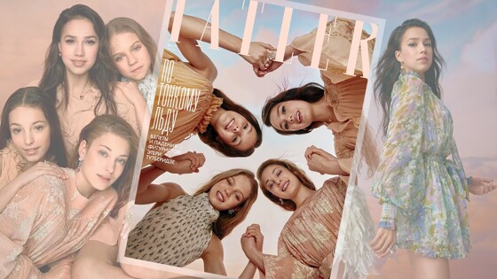 Российские фигуристки Алина Загитова, Анна Щербакова, Алена Косторная и Александра Трусова добрались до глянца. Девушки попали на обложку журнала «Татлер»:https://www.tatler.ru/, дали откровенные интервью и поучаствовали в очень красивой фотосессии. Мы собрали самые яркие цитаты спортсменок из группы Этери Тутберидзе. Загитова — характер, тренировки по 12 часов, поступление в вуз В фигурное катание я попала в три года. Мы жили в Альметьевске, папа играл за местный хоккейный клуб «Нефтяник». Когда мне было тринадцать лет, мы с бабушкой переехали в Москву — я поступила в центр спорта и образования «Самбо-70» и попала в группу к Этери Георгиевне Тутберидзе, Сергею Дудакову и Даниилу Глейхенгаузу. Мы столько прошли вместе, столько пережили! Несколько раз я собиралась уходить из спорта, но характер не позволил: если что-то не получается, я буду делать так, чтобы получилось. Было золото на Гран-при Франции, потом победа на чемпионате России, чемпионате Европы, и, наконец, на Олимпиаде. Сейчас я взяла небольшую паузу и не выступаю на соревнованиях. Но продолжаю тренироваться в «Хрустальном» по 12 часов в день. Параллельно участвую в шоу Татьяны Навки «Спящая красавица», в котором она доверила мне главную роль. И готовлюсь к поступлению в Российский государственный университет физической культуры. Хочу отучиться на тренера и, как Этери Георгиевна, воспитывать новых чемпионов. Косторная — королева Тутберидзе, нейрохирургия, уроки по почте «Этери Георгиевну не просто так называют Снежной Королевой. На льду она и правда такая. Требовательная — в первую очередь к себе, а потом уже и к нам. Хочет, чтобы мы были лучшими. Я познакомилась с ней на чемпионате России в Питере: я попала к ней на разминку и поняла, что все, что я делала до этого, было детским садом. В этом сезоне катаюсь под любимую композицию из саги «Сумерки». Наверное, из всех моих программ эта любимая: я обожаю образ Кристен Стюарт в этом фильме и мне довольно легко в него вживаться. У меня так же, как и у Беллы Свон, бывают два состояния: либо я совсем ничего не хочу, либо энергия бьет через край. Хотя тренировки и занимают большую часть моей жизни, сейчас я стараюсь уделять как можно больше времени учебе. В следующем году мне предстоит сдать ЕГЭ и поступить в университет. А я до сих пор не могу определиться — журфак или медицинский? Точно знаю, что не хочу становиться тренером, а вот спортивным обозревателем или нейрохирургом — с удовольствием. В школе я появляюсь редко, и все задания отсылаю преподавателям по почте. В свободное от катка время, то есть летом, я занимаюсь конкуром. Осваиваю с тренером базовые элементы, а в конюшне тети на ее коне Роки отрабатываю выученные приемы. Помимо того, чтобы победить на грядущем чемпионате мира в Монреале, у меня есть еще одна цель: я коплю призовые на покупку собственной лошади. Хочу фриза или тинкера. Лошади обеих этих пород очень красивые, но тинкер чуть сильнее в плане прыжков. Трусова — Медведева, четверные и Олимпиада В группу к Этери Георгиевне Тутберидзе я пришла в 11 лет. В этой команде были лучшие тренеры и занималась Женя Медведева — она для меня пример трудолюбия», — сказала Трусова в числе прочего. Практически везде я стараюсь зайти в зоомагазин и купить новый костюм для своей чихуа-хуа Тины — она у меня страшная модница, и, кажется, на ее гардероб я