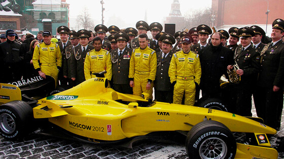 «Мидлэнд» ввёл российский флаг в официальные протоколы Формулы-1, но был ли от этого хоть какой-то толк? 25 февраля 2005 года на подмороженную брусчатку Красной площади выкатился необычный жёлтый автомобиль — это была презентация «Джордана» EJ15, последней машины, названная в честь Эдди Джордана. EJ15 Джордану, впрочем, уже не принадлежала — несколькими неделями назад он продал своё детище за $ 60 млн Midland Group. Под звуки оркестра в холодном московском воздухе мёрзли призовые пилоты команды — Тьягу Монтейру и Нараин Картикеян, рядом с ними улыбался новый тестер — Роман Русинов. Никогда раньше презентации новой машины Формулы-1 не проводили в России — так началась история первой отечественной команды в «Больших призах». Последний вздох «Джордана» Инициатором сделки выступил канадский миллиардер Алекс Шнайдер, сооснователь Midland Group. Шнайдер родился в 1968 году в Ленинграде, но в возрасте шести лет переехал с родителями в Израиль, а в 80-х чета обосновалась в Канаде. Презентация в Москве должна была подчеркнуть корни новых владельцев и привлечь российских спонсоров. В первый год переименовывать команду не стали, мотивируя это тем, что сезон-2005 будет переходным. Год изначально обещал стать непростым. Когда из Формулы-1 исчезли двигатели «Косуорт», «Джордан» остался без контракта на силовые установки и лишь в последний момент удалось договориться с «Тойотой», так что шасси пришлось в спешке переделывать под новый двигатель. EJ15 в итоге получилась медленной и неповоротливой, а не слишком именитые Монтейру с Картикеяном обретались в основном в конце пелотона. В первых восьми гонках Тьягу пару раз добирался до 10-го места (очки тогда начислялись первой восьмёрке), но первых зачётных баллов пришлось ждать до печально известного Гран-при США, когда на старте осталось лишь шесть машин, а Монтейру приехал к финишу третьим. Это был последний подиум в истории «Джордана», и даже не жаль, что самого Эдди в команде не было — едва ли он именно так хотел финальный раз попасть в топ-3. Ко второй половине сезона во многом усилиями тогда ещё мало кому известного Джеймса Ки удалось подготовить EJ15B, которую Монтейру привёз восьмым в Спа — больше очков у команды в том сезоне не было. В Кубке конструкторов «Джордан» уже в третий раз подряд занял лишь девятое место. Позади осталась только «Минарди», но и она проводила свой последний сезон. В 2006-м команда из Фаэнцы стала называться «Торо Россо», а «Джордан» официально переименовали в «Мидлэнд». Год «Мидлэнда» Команда сменила не только название, но и флаг — отныне она выступала под российской лицензией и соответствующим триколором. Российского, правда, в «Мидлэнде» было мало — база находилась в Сильверстоуне, руководил командой Колин Коллес, а строил для неё машины Джеймс Ки — после относительных успехов EJ15B 33-летний специалист получил повышение и стал одним из самых молодых технических директоров в паддоке. Роман Русинов по-прежнему оставался запасным пилотом команды и в ноябре 2005-го провёл в Хересе свои первые тесты. На роль призового пилота в пару к Монтейру Шнайдер хотел пригласить Такуму Сато, с которым Ки работал несколько лет назад, однако с японцем не срослось, и тогда выбор пал на голландца Кристиана Альберса, дебютировавшего годом ранее в «Минарди». Русинов же так и остался в запасных: брать россиянина без