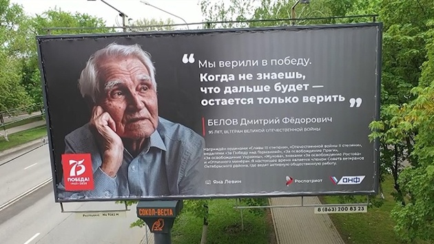 По всей России появляются билборды, с которых ветераны дают напутствия жителям страны. Всероссийский фотопроект «75 правил жизни победителей» - эксперимент, в котором ветераны Великой Отечественной войны выступили в роли моделей. Фотографы-волонтеры сняли их красивые счастливые лица с другого ракурса, без напоминаний о войне. А победители поделились своими жизненными принципами. «Мы приехали к Дмитрию Федоровичу, чтобы сделать фотографию. Он нам предложил чая. Когда мы пили чай, я увидел, что у него лежат шахматы. Оказалось, что он большой любитель игры в шахматы. Я предложил сыграть партию, во время игры было сделано несколько снимков, а Дмитрий Федорович рассказывал о своем пути, о жизни после войны, дал ряд наставлений», - рассказал руководитель регионального исполкома ОНФ в Ростовской области Алексей Варяница. Дмитрию Белову в ноябре будет 95 лет. Это он уже после войны увлекся шахматами. А тогда в 1941 году, шестнадцатилетним мальчишкой, окончив восемь классов школы, пошел рыть окопы. В январе 1943 был призван служить в саперную часть минером. Он освобождал родную Ростовскую область, находился в обороне на реке Миус. Здесь на протяжении 470-ти дней шли одни из самых ожесточенных кровопролитных боев Великой отечественной войны. Выбить гитлеровцев удалось только со второй попытки в августе 1943 года. На одного погибшего немца приходилось семь-восемь русских. Потери Красной армии составили более 800 тысяч солдат. Сейчас на этом месте на линии Миус-фронта возведен самый крупный в регионе военно-исторический комплекс «Самбекские высоты», где ежегодно в канун Дня Победы с почестями хоронят тех, чьи останки были найдены спустя десятки лет. В этом году найдено и захоронено еще 60 солдат красной армии. Перезахоронения останков воинов будут проходить до тех пор, пока не найдут последнего солдата, участвовавшего в боях на Миус-фронте. Дмитрий Федорович тогда получил тяжелое ранение, но выжил. По словам ветераны, ему тогда помогла вера в себя, в лучшее, в Победу. За свои действия на Миус-фронте был удостоен награды – знака Отличный минер. «До сих пор два осколочка сидят. Ну, они маленькие. Я был пухленький, не было заметно, а сейчас они катаются. Это была страшная оборона, бесконечные минные поля, бесконечные ограждения, бесконечные окопы с той и с другой стороны», - рассказал Белов. Будучи в преклонном возрасте и перенеся две операции на ноге, ветеран все же смог встать с кровати и ходить вопреки прогнозам врачей, на собственных ногах принял мини-парад, приуроченный к 75-летию Победы, который прошел в его честь во дворе. Своими жизненными правилами с огромных плакатов делятся с россиянами по всей стране 280 таких же сильных духом победителей великой отечественной войны, чьи фотографии размещены на главных улицах больших городов.
