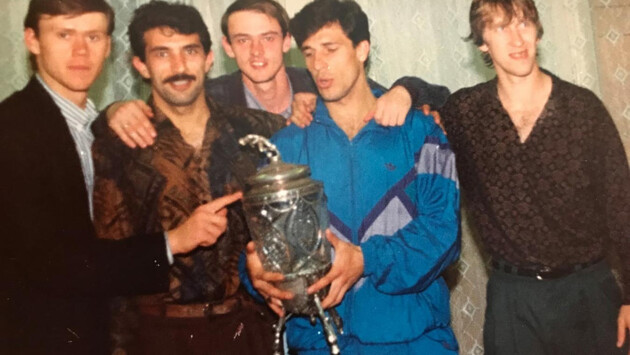 Байки о «Спартаке», «Динамо» и Испании от лучшего бомбардира первого чемпионата России Вели Касумова. Вели Касумов – уникальный футболист. В России он провёл всего год, но за это время умудрился поиграть за «Спартак» и за «Динамо» и стать лучшим бомбардиром первого чемпионата России. В Испании Касумов со скромным «Бетисом» за два года вышел в Примеру и взял бронзу чемпионата. Клуб из Севильи тогда опередил не кого-нибудь, а «Барселону». При этом за родную сборную Азербайджана форвард за всю карьеру так ни разу и не забил. Чтобы выяснить, как же так получилось, мы обратились к самому Касумову и услышали не только ответ, но и много чего интересного о «Спартаке», «Динамо» и его карьере в Испании. – Несколько лет назад вы работали тренером «Нефтчи». Чем сейчас занимаетесь? – После ухода из «Нефтчи» я год сидел без работы. Потом начал работать послом Лиги Европы, а затем и Евро. Сейчас также координирую центр в Баку, который развивает талантливых футболистов от 12 до 14 лет. – Не хотите вернуться в профессиональный футбол? – Конечно, эта работа скорее временная. Ещё хочется поделиться своим опытом со взрослыми футболистами. Но варианты, которые предлагают, не очень меня интересуют. Мне звонили даже из России, не из высшей лиги. Но хочется всё-таки работать с амбициозными клубами. Однако всё может быть, когда ситуация с коронавирусом пройдёт, может, и в России окажусь. – На улицу выходите? – Если надо выйти из дома, на специальный номер посылаем код: 1 — в аптеку, 2 — в магазин, 3 — на похороны и по другим похожим делам. Затем отвечает диспетчер, после чего можно выходить из дома. Например, на поездку за покупками даётся три часа. – А кто это проверяет? – Патрули. Их сейчас много в Баку. Они просят телефон и смотрят смс. С молодёжной сборной СССР Касумов выиграл чемпионат Европы – Вы родились в Гяндже, но на профессиональном уровне дебютировали на Украине. Как вас туда занесло? – Честно говоря, случайно. Мой сосед учился в Харькове. Однажды приехал на каникулы и пригласил к себе. В Гяндже шансов заиграть за большой клуб не было, поэтому я решился на переезд. Там поступил в училище и через год уже играл во второй лиге за «Маяк». Потом меня заметили, пригласили в молодёжную сборную СССР, с которой позже я выиграл чемпионат Европы. – А как оказались в «Металлисте»? – Как только после чемпионата Европы я вернулся из Москвы в Харьков, меня сразу же забрали в «Металлист». Для меня тогда это был шок – всегда мечтал играть в высшей лиге. Тем более в то время состав у «Металлиста» был очень приличным: много возрастных ребят, которые делились своим опытом. – Чему они вас научили? – В «Металлисте» я по-спортивному стал мужиком, потому что тренировки проводились «до крови». Никто никого не жалел. Таких тренировок, как в «Металлисте» я потом нигде не видел. Когда я туда только пришёл, чуть с ума не сошёл. Двигаюсь с мячом, смотрю: мне подкаты летят в спину, ноги, голову. Хотел убежать оттуда. Но потом ничего, привык. Стал таким же по-спортивному агрессивным. – Тут вас и заприметил «Нефтчи»? – Да, я уже начал регулярно играть, попадал в стартовый состав. Тогда меня и пригласил «Нефтчи». Честно говоря, при всем моем уважении к флагману, хотелось на тот момент испытать свои силы в клубах с большим опытом: «Спартак», «Динамо» Киев или московское «Динамо». Но «Нефтчи» пошёл на
