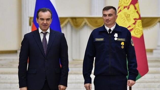 Глава администрации (губернатор) Краснодарского края Вениамин Кондратьев вручил государственные награды выдающимся жителям Кубани во время торжественной церемонии, которая по традиции состоялась в Краснодаре в День России.Губернатор Краснодарского края сказал, что тридцать лет назад была принята Декларация о государственном суверенитете России и с этого документа начался отсчет новой истории, фундаментальных изменений страны.— Перемены были востребованы временем, и жители их поддержали. За тридцать лет страна изменилась. Она стала великой державой, но по-прежнему главным принципом и основной ценностью нашего государства остаются люди, их благополучие, их уверенность в сегодняшнем и завтрашнем дне,— отметил Вениамин Кондратьев.Обращаясь к участникам торжественной церемонии, глава региона подчеркнул, что они не просто выполняют свой профессиональный долг, а меняют окружающий мир своим ежедневным трудом, влияют на развитие отраслей экономики и фундаментальной науки, спорта, укрепляют межнациональный мир и согласие в регионе.— Россия — это миллионы человек, это мы с вами. Быть ее гражданином — настоящая честь и ответственность. Вы не мыслите себя без своего края, своей страны. Этим и сильна Россия,— обратился к участникам торжественного мероприятия губернатор.Он поблагодарил участников церемонии за вклад в благополучие России в целом и Кубани в честности и вручил присутствующим государственные награды. Указами президента РФ за достигнутые трудовые успехи и многолетнюю добросовестную работу орденом Александра Невского награжден председатель Контрольно-счетной палаты Краснодарского края Юрий Агафонов. Медалью «За отвагу на пожаре» — каменщик Северо-Восточной водной управляющей компании «Курганинский групповой водопровод» Александр Шамода. Медалью «За спасение погибавших» — спасатели службы спасения Новороссийска Виктор Романов и Валерий Свириденко.Почетное звание «Заслуженный спасатель Российской Федерации» присвоено начальнику Армавирского аварийно-спасательного отряда Краснодарской краевой службы «Кубань-СПАС» Игорю Бойко.За высокий профессионализм и многолетний добросовестный труд звание «Заслуженный работник высшей школы Российской Федерации» присуждено Игорю Родину, профессору кафедры Кубанского государственного аграрного университета имени Трубилина. Главный агроном ООО «Успенский Агропромсоюз» Александр Мальцев стал заслуженным работником сельского хозяйства России. Благодарность президента РФ объявлена начальнику Управления образовательных программ Всероссийского детского центра «Орленок» Ларисе Сайфутдиновой.Медалью «Герой труда Кубани» награждено десять человек. Среди них тренер Центра олимпийской подготовки по прыжкам на батуте Виталий Дубко, член Краснодарского регионального отделения «Союз писателей Кубани» Общероссийской общественной организации «Союз писателей России» Николай Зиновьев.Шесть человек получили медаль «За выдающийся вклад в развитие Кубани» I степени. Из рук губернатора награды получили в том числе заместитель директора по научной работе Краснодарского филиала Финансового университета при Правительстве Российской Федерации Сергей Берлин, председатель совета Регионального отделения Общероссийской общественной организации «Союз арм