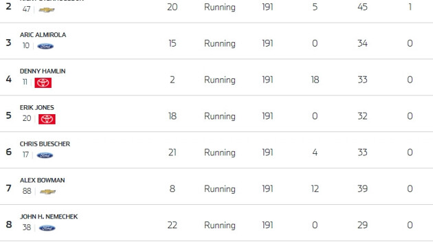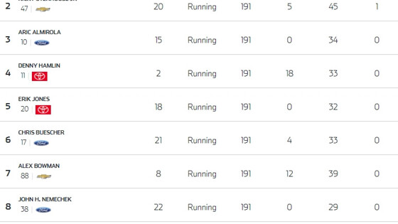 Гонщик Team Penske Райан Блэйни выиграл гонку NASCAR GEICO 500 в Талладеге. Эта победа стала для него первой в сезоне. Судьба этапа решилась в овертайме. Пелотон возглавил Кевин Харвик. Но Блэйни смог вырваться вперёд. Выйдя из последнего поворота, он пытался оттормозить Эрика Джонса. В результате позади машины Райана произошла авария, а для определения победителя потребовался фотофиниш. Права на видео принадлежат National Association for Stock Car Auto Racing. Видео доступно на странице FOX:NASCAR в «Твиттере». В итоге вторым стал Рикки Стенхаус-младший. Он уступил Блэйни 0,007 секунды. На финишной линии передние бамперы их машин разделили 30 сантиметров. Третье место занял Эрик Альмирола. Права на видео принадлежат National Association for Stock Car Auto Racing. Видео доступно на странице NASCAR в YouTube. Личный зачёт после 13 гонок сезона возглавляет Харвик, набравший 490 очков. Второе место занимает Джоуи Логано (467), третье — Блэйни (465), четвёртое – Чейз Эллиотт (458), пятое — Брэд Кезеловски (441).