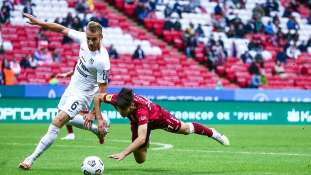 В отсутствие Слуцкого "рубиновые" набрали первое очко Старт сезона "Рубину" откровенно не удался — в двух домашних матчах набрано всего одно очко. О ситуации в турнирной таблице рассуждать не приходится, слишком мало времени прошло, а вот с игрой команды Слуцкого пока что не все ладно. Сегодняшняя встреча с "Уралом" из Екатеринбурга получилась довольно эмоциональной, и результат ее мог быть совершенно любым. О том, как все закончилось ничьей, почему снова на первый план вышел VAR, и о дебюте Олега Веретенникова в роли тренера РПЛ — в материале "Реального времени". Спич Слуцкого отвел внимание от плохой игры "Рубина" Встреча первого тура против "Локомотива" запомнилась скандальной речью главного тренера "Рубина". Ее обсуждали намного больше, чем неважную игру команды Леонида Слуцкого. По сути, никаких выводов из июньского поражения от "Локо" с тем же счетом сделано не было — все так же забил Миранчук, все так же московский клуб здорово контролировал мяч, а казанцы запомнились лишь тем самым моментом с падением в штрафной Игнатьева. После игры вратарь Гильерме был убежден, что эпизод был в его пользу и нападающему казанцев нужно было показывать желтую карточку. В таком же духе высказался и главный тренер железнодорожников Марко Николич. А вот главный тренер "Рубина" за свои громкие высказывания получил два матча дисквалификации (один из которых — условно) и 200 тысяч рублей штрафа. Далеко не самое серьезное наказание, но, конечно, неприятное. Матч с "Уралом" Слуцкий смотрел с трибуны, сидя ровно по центру поля в ложе. Всю игру он привычно раскачивался в мягком кресле и периодически что-то выкрикивал своим футболистам. Особенно активен тренер был в концовке. После игры к Леониду Викторовичу устремилась толпа болельщиков — любителей селфи. Очевидно, что настроение тренера было не самым радужным — "Урал" в таком состоянии его команда была обязана обыгрывать в любом составе, однако Слуцкий не отказал никому, потратив на совместные фото больше 10 минут. Деспотович опять в запасе, Шатова снова нет в заявке Стартовый состав "Рубина" на эту встречу по сравнению с игрой против "Локо" не изменился. В воротах остался Дюпин. Защитную линию составили Самошников, Уремович, Старфельт и Меркулов. В центре поля — Коновалов, Евтич и Абильдгор. Крайние полузащитники — Кварацхелия и Бакаев. А позицию на острие атаки занял Игнатьев. Помощник Слуцкого Олег Веретенников, исполнявший обязанности главного тренера, прокомментировал это так: — Мы не совсем довольны остались игрой команды в прошлом матче, там было допущено две серьезные ошибки, когда соперник забивал голы. Но в целом претензий к команде не было. Поэтому решили не менять состав. Плюс у нас есть и дисквалифицированные, и травмированные игроки. Самым дорогим приобретением "Рубина" сейчас принято называть серба Джордже Деспотовича. Однако уже второй домашний матч подряд он остается в запасе и выходит на поле лишь во втором тайме. В игре против "Урала" Деспот появился на поле на 64-й минуте, выйдя в рамках тройной замены вместе с Дмитрием Тарасовым и Денисом Макаровым. А вот звездный российский новичок Олег Шатов и вовсе еще ни разу не попадал в заявку на официальную игру. — Ждем и его, и Сашу Зуева. В ближайшее время они должны войти в общую группу, — рассказал после игры Веретенников. Два реальных пенальт