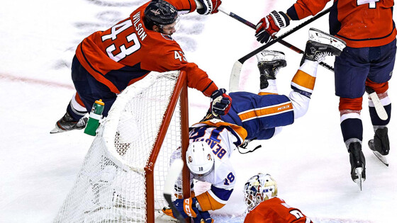Одна пара уже определена. В полуфиналах конференций остаются двое неизвестных. Определены шесть из восьми участников второго раунда НХЛ К вечеру 21 августа в Национальной хоккейной лиге завершилось шесть из восьми серий первого раунда плей-офф. Во второй раунд Кубка Стэнли уже пробились «Вегас Голден Найтс», «Колорадо Эвеланш» и «Даллас Старз» в Западной конференции, а также «Тампа-Бэй Лайтнинг», «Бостон Брюинз» и «Нью-Йорк Айлендерс» – в Восточной. Напомним, что пары во всех раундах нынешнего розыгрыша Кубка Стэнли определяются на основании результатов предварительного раунда, в котором лидеры конференций провели два круговых турнира (на Востоке и на Западе) за лучший посев в плей-офф. Победители серий плей-ин получили свои номера за счёт выступления в регулярном чемпионате. «Чемпионат» представляет все турнирные расклады на данный момент. Посев в конференциях Круговой турнир в Восточной конференции лучше всех удался «Филадельфии Флайерз». Подопечные Алена Виньо выиграли первый посев, переиграв в очной встрече «Тампа-Бэй Лайтнинг». Третье место на Востоке досталось «Вашингтон Кэпиталз», сломившему сопротивление «Бостон Брюинз». Лучшей командой в Западной конференции стал «Вегас Голден Найтс». Команда Питера Дебура без потерь прошла Раунд Робин, опередив на одно очко «Колорадо Эвеланш». Третье место занял «Даллас Старз», оставив на последней позиции лучшую команду конференции по итогам регулярки «Сент-Луис Блюз». жирным выделены команды, прошедшие в полуфинал конференций курсивом выделены команды, проигравшие в первом раунде таблицы приведены без команд, покинувших плей-офф после поражения в сериях плей-ин Восточная конференцияЗападная конференция1«Филадельфия Флайерз»«Вегас Голден Найтс»2«Тампа-Бэй Лайтнинг»«Колорадо Эвеланш»3«Вашингтон Кэпиталз»«Даллас Старз»4«Бостон Брюинз»«Сент-Луис Блюз»5«Каролина Харрикейнз»«Ванкувер Кэнакс»6«Нью-Йорк Айлендерс»«Калгари Флэймз»7«Коламбус Блю Джекетс»«Аризона Койотс»8«Монреаль Канадиенс»«Чикаго Блэкхоукс» Ситуация в парах первого раунда НХЛ на данный момент Западная конференция (в скобках – номер посева) «Вегас» (1) – «Чикаго» (8) – 4-1 «Колорадо» (2) – «Аризона» (7) – 4-1 «Даллас» (3) – «Калгари» (6) – 4-2 «Сент-Луис» (4) – «Ванкувер» (5) – 2-3 20 августа определился третий участник второго раунда плей-офф НХЛ от Западной конференции. «Даллас» горел со счётом 0:3 к седьмой минуте первого периода матча с «Калгари», однако затем забросил семь шайб кряду и одержал убедительную победу. Солировал в матче российский нападающий «звёзд» Денис Гурьянов, набравший 5 (4+1) очков и обновивший целый ряд российских рекордов. Примечательно, что пробились дальше три лучшие команды по итогам предварительного раунда Кубка Стэнли. Восточная конференция «Филадельфия» (1) – «Монреаль» (8) – 3-2 «Тампа» (2) – «Коламбус» (7) – 4-1 «Вашингтон» (3) – «Айлендерс» (6) – 1-4 «Бостон» (4) – «Каролина» (5) – 4-1 На Востоке «Вашингтон» не смог зацепиться за продолжение серии с «Айлендерс». Подопечные Барри Тротца быстро реализовали большинство на старте встречи, затем увеличили перевес во втором периоде, после чего очень уверенно довели матч до логического завершения. Более того, в концовке третьего периода «островитяне» произвели два контрольных выстрела по пустым воротам столичной команды, доведя счёт в пятом мат