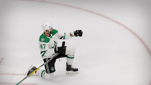 На стадионе «Роджерс Плэйс» в Эдмонтоне (провинция Альберта, Канада) состоялся седьмой полуфинальный матч Западной конференции Национальной хоккейной лиги между «Колорадо Эвеланш» и «Даллас Старз». Встреча завершилась победой «Далласа» со счётом 5:4 в овертайме. Голами в составе победителей отметились Йоэль Кивиранта (хет-трик) и Александр Радулов (дубль). Лидер «Колорадо» и лучший бомбардир плей-офф НХЛ Натан Маккиннон встретил победный гол Кивиранты на скамейке «Колорадо». Канадский форвард закрыл глаза после точного броска финского нападающего. Права на видео принадлежат Rogers Media Inc. Посмотреть видео можно в твиттер-аккаунте компании Sportsnet. Примечательно, что для Маккиннона этот матч оказался первым за весь плей-офф, в котором он не смог отметиться результативными действиями. К седьмой встрече Натан подошёл с 14-матчевой результативной серией со старта плей-офф, что являлось вторым результатом в истории Кубка Стэнли.