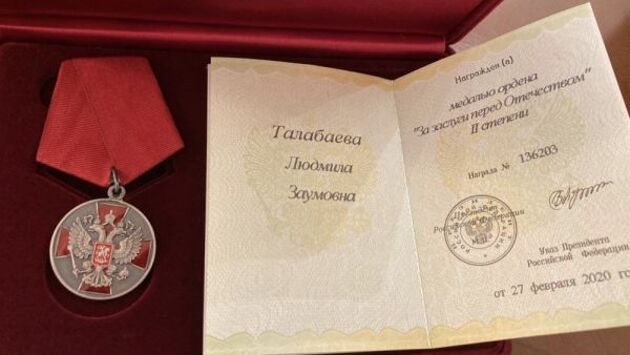 Сенатор Людмила Талабаева получила государственную награду за особые заслуги