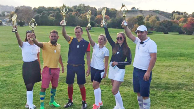 На территории гольф-клуба на Гребном канале «Москва» в Крылатском состоялись соревнования по футгольфу. Как сообщается на странице учреждения во «ВКонтакте», были разыграны награды в первом «испытательном» турнире. В распоряжении участников было профессиональное поле из девяти лунок. В итоге места распределились следующим образом: мужчины 1. Александр Макаренко 2. Виктор Сидоров 3. Александр Коржуев женщины 1. Дарья Пономарева 2. Татьяна Лавренюк 3. Вероника Кубанычбекова (победила в дополнительном раунде благодаря точному пату). Футгольф - это синтез футбола и гольфа. Участники игры используют футбольный мяч, которым должны попасть в лунки на поле для гольфа за меньшее количество ударов. В России этот вид спорта набирает популярность с 2015 года.