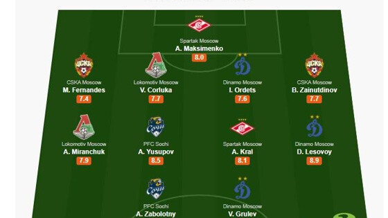 Нападающий «Сочи» Антон Заболотный получил наивысшую оценку от WhoScored среди игроков, принявших участие в матчах 10-го тура Российской Премьер-Лиги. Форвард сочинской команды получил оценку 9,7. Напомним, Заболотный оформил дубль в ворота «Ростова». В символическую сборную тура по версии WhoScored попали три игрока «Динамо» — Вячеслав Грулёв (9,0), Даниил Лесовой (8,9) и Иван Ордец (7,6). Остальные команды представлены двумя игроками: наряду с Заболотным в сборную включён хавбек «Сочи» Артур Юсупов (8,5), от «Спартака» в команду попали Алекс Крал (8,1) и Александр Максименко (8,0), от ЦСКА — Бактийор Зайнутдинов (7,7) и Марио Фернандес (7,4), от «Локомотива» — Антон Миранчук (7,9) и Ведран Чорлука (7,7). Стоит отметить, что защитник «железнодорожников» при этом отыграл всего 35 минут в матче с «Химками».