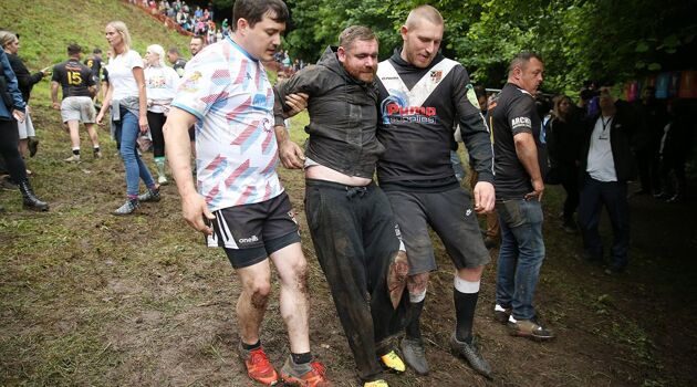 Безумное спортивное развлечение британцев: гонка за сырной головой в Глостере – люди летят кубарем с горы, видео