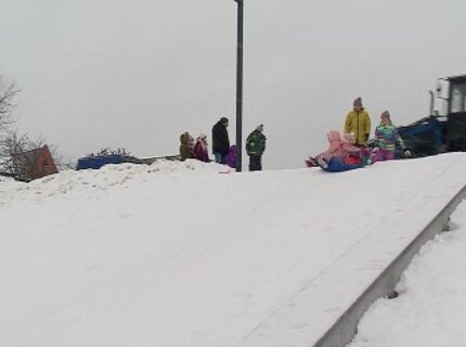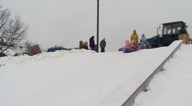Родители с детьми предпочли деревянной горке склон набережной