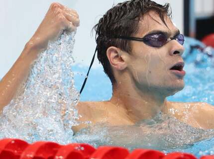 Пловец из США Кейлеб Дрессел показал, как тренируется в бассейне вместе с собакой