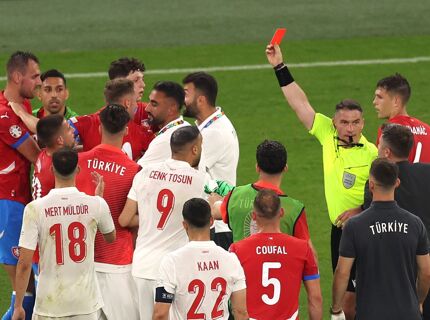 Турция обыграла Чехию благодаря голу Тосуна на 94-й – 2:1. Чехи играли в меньшинстве с 20-й минуты