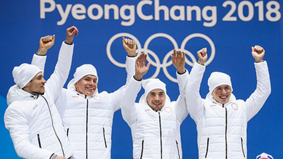 Торжественная церемония вручения олимпийских медалей призерам по итогам соревнований в мужской лыжной эстафете 4х10 км состоялась на медальной площади Пхёнчхана. Серебряные медали по итогам эстафеты получили Андрей Ларьков, Александр Большунов, Алексей Червоткин и Денис Спицов.