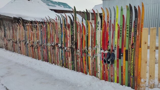 Из собранных лыж был создан забор. Дом, где появился арт-объект, находится по пути на лыжную базу.