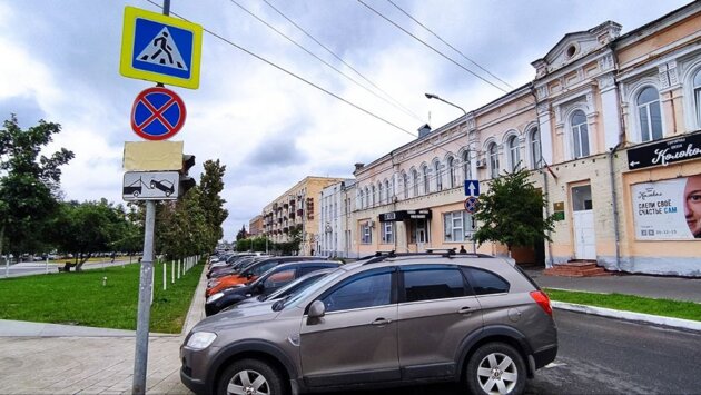 Парковаться на четной стороне улицы Славы в Пензе нельзя в любое время суток: табличка, где были указаны часы действия знака «Остановка запрещена», заклеена.