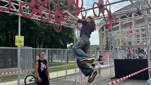 Дальше внимание зрителей привлекла полоса препятствий, к которой выстроилась огромная очередь из желающих испытать себя. Для этого нужно было лазать по крутящимся винтам, висеть на кольцах, перепрыгивать стену... В общем, силы и выносливости требовались явно немало. Со всем этим запросто справился мальчик лет 13. Вдохновленная его примером, на полосу вбежала девушка. Добравшись до колец, изо всех сил попыталась не соскользнуть с них, но все равно упала на маты. Однако и это не стерло с ее лица счастливой улыбки. "Лучшего дня быть не может", - вставая, сказала девушка.