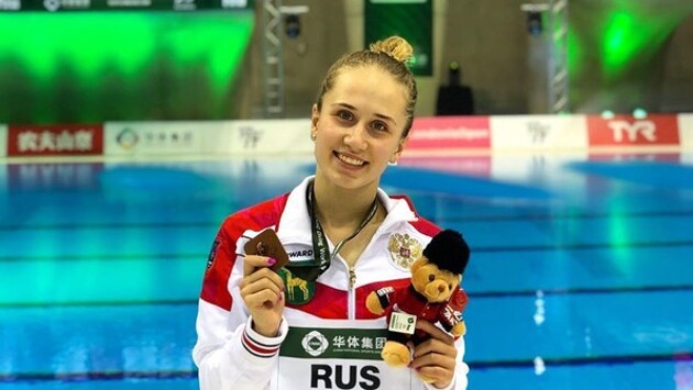 Россияне набрали 390,05 балла в прыжках с 10-метровой вышки и трёхметрового трамплина. Лидером в этой дисциплине стали представители Китая Линь Шань и Ян Цзянь. В их активе 416,65 балла. Тройку лидеров замкнули американцы Катрине Янг и Эндрю Капобианко (357,60).