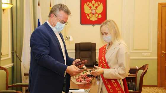 Воронежской гимнастке и Олимпийской чемпионке Ангелине Мельниковой вручили знак «Почетного гражданина». Награду она получила из рук мэра Воронежа Вадима Кстенина.