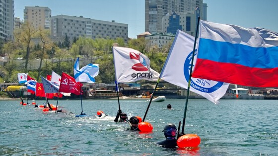 "Ежегодно праздничный заплыв на Водной станции Тихоокеанского флота производится парадным строем, участники которого пронесут над водой знамена Великой Победы, флаги военного времени СССР, флаги с государственной и ведомственной символикой. В нем примут участие спортсмены-подводники, пловцы и любители плавания на открытой воде", - говорится в сообщении.