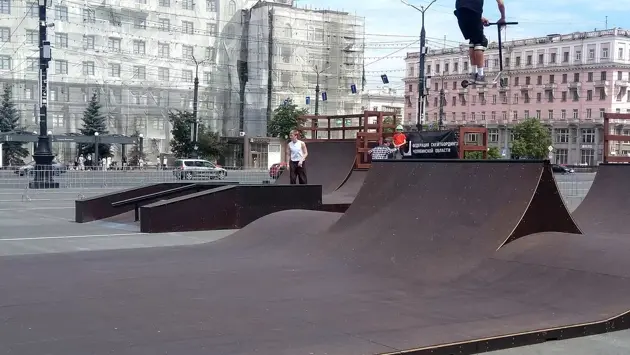 В Челябинске на площади Революции сегодня, 19 июня, состоялось открытие нового скейт-парка из нескольких мини-рамп, началом работы которого стали проведённые здесь соревнования в трёх дисциплинах уличного спорта.Мини-рампы предназначены для выполнения скольжений, а также для небольших «вылетов». Конструкции подходят как для новичков, так и для спортсменов разного уровня подготовки. По сути, установив подобную конструкцию, можно предоставить возможность кататься любой аудитории уличных спортсменов. В течение всего лета на этой площадке будут проводить бесплатные занятия инструкторы МБУ «Спортивный город».Соревнования в честь открытия новой спортивной площадки провели челябинский магазин спортснаряжения «Streetlab – Boardshop» совместно со «Спортивным городом» при поддержке администрации Челябинска.«Сегодня у нас на площади Революции, в самом центре Челябинска, открывается большой скейт-парк, который будет работать весь летний сезон и зацепит ещё немного осени. Сегодня его официальное открытие, и в рамках этого открытия будут проходить соревнования в трёх дисциплинах; скейтборд, самокат и BMX», - рассказал перед началом мероприятия резидент Федерации скейтбординга Челябинской области Анатолий Янченко.Отметим, что такие дисциплины как скейтбординг, BMX, самокат не имеют жестких правил и ограничений.Перед началом соревнований на площади Революции участникам напомнили о необходимых мерах предосторожности – важности наличия защитного шлема у всех велосипедистов и у начинающих спортсменов, не достигших 18-ти лет, в прочих уличных дисциплинах. В общей сложности в соревнованиях приняло участие около 50 человек. Зрелище вышло впечатляющим и собрало много зрителей. Прохожие восхищались спортсменами. «Смотри, что творят! Экстремалы…» - говорила молодая женщина своему маленькому сыну и спешила присоединиться к зрителям. Не исключено, что после увиденного её сын сам захочет покорить трюковой самокат или скейтборд: в центре Челябинска для этого теперь есть все возможности.Напомним, этим летом в столице Южного Урала будет работать пять скейт-площадок, на которых любители экстремальных видов спорта смогут отточить свои навыки и научиться чему-то новому.Организаторами соревнований стали МБУ «Спортивный город» и магазин «StreetLab» при поддержке Администрации города Челябинска.СПРАВКА.Скейтбординг (skateboarding) — экстремальный вид спорта, заключающийся в катании, а также в исполнении различных трюков на скейтборде. BMX (Bicycle Moto Extreme) — разновидность велосипеда, изначально придуманная взрослыми любителями мотокросса для тренировок. Кикскутеринг, или экстремальный самокат, – это вид спорта, который заключается в выполнении определённых элементов, порой гимнастических или акробатических, на трюковом самокате в скейт-парке или на улице.