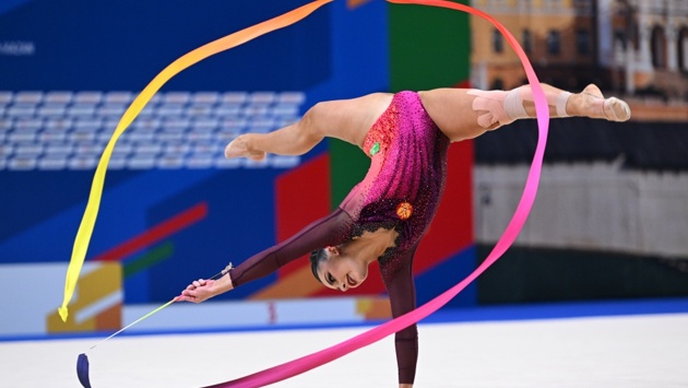Российская гимнастка Лала Крамаренко стала победительницей Игр БРИКС в упражнениях с лентой.