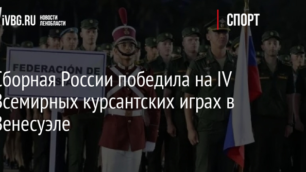 Российская сборная победила на IV Всемирных курсантских играх, которые проходили с 17 по 24 августа в Каркасе. Об этом сообщает посольство России в Венесуэле. Национальную команду в семи дисциплинах представляли 127 спортсменов и тренеров. Во Всемирных курсантских играх участвовали команды из России, Китая, Турции, Ирана, Пакистана, Мозамбика, Шри-Ланки и Никарагуа.