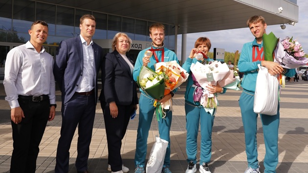 Яркий праздник состоялся сегодня в аэропорту имени В.П. Чкалова. Нижегородцы хлебом и солью встретили триумфаторов Паралимпийских игр в Париже — легкоатлетов Андрея Вдовина, Дмитрия Сафронова и их тренера Галину Кошелеву. На двоих Андрей и Дмитрий завоевали в столице Франции пять медалей. Андрей Вдовин стал двукратным паралимпийским чемпионом (дистанции 200 и 400 метров), добыл бронзу на стометровке. Дмитрий Сафронов стал серебряным призёром Игр на дистанции 200 метров, выиграл бронзовую медаль в беге на 100 метров. Паралимпийцев в аэропорту с нетерпением ждали родные, близкие, друзья, а также представители спортивной общественности, воспитанники спортивных школ, руководители города и области. Слова приветствия прозвучали от министра спорта Нижегородской области Дмитрия Кабайло, заместителя главы администрации городского округа Дзержинск Ольги Палеевой. «Мы очень тронуты таким приёмом, — призналась Галина Кошелева. – После стольких дней волнений и переживаний мы наконец-то дома. Конкуренция на Паралимпиаде выросла очень серьёзно. Например, у Димы даже в России в его классе есть несколько спортсменов, которые очень хорошо бегут спринт, что уж говорить об Играх. Тем более, что за некоторое время до соревнований Дима получил сильный спазм мышц, мы еле-еле справились с травмой перед Парижем. И две его медали – серебряная и бронзовая, для меня всё равно, что золотые. Дмитрий – настоящий боец!».С травмой выступал на Паралимпиаде и Андрей Вдовин. Он получил её на тренировке, готовясь к забегу на 100 метров. Тем не менее, в финале взял там бронзу, а дистанции 200 и 400 метров выиграл! «Мы знали, что у Андрея в классе очень сильно бегут бразильцы, — рассказывает тренер. – Рассчитывали, что в беге на 200 метров сможем попасть в тройку, а вот 400 метров, конечно, хотелось бы выиграть. А он взял две золотых медали! Как Андрюша бежал 400 метров – выложился полностью! Для меня это тоже был невероятный выхлест энергии. Когда забег финишировал, я не смогла идти, не смогла подняться по лестнице. В общем, я вместе с ним пробежала дистанцию». Андрей и Дмитрий рассказали, что на Паралимпиаде была очень дружеская атмосфера. Трибуны практически каждый день были до отказа заполнены зрителями, которые здорово поддерживали участников Паралимпиады. «Сколько там было – 80 тысяч, 100 тысяч человек? Точно не знаю, но вы представьте, все кричат, болеют! – замечает Галина Кошелева. – Некоторые спортсмены, выходя на старт, просто не справлялись с такой энергетикой». «Меня не раз спрашивали, не было ли на нас на Паралимпиаде политического давления, — говорит Дмитрий Сафронов. – Лично я ничего такого не ощутил. Хотя конкурировал со спортсменом с Украины. Я приехал на Паралимпиаду выступать, принять участие в празднике спорта, а не доказывать кому-то какие-то политические моменты». Спортсмены благодарили за поддержку всех своих болельщиков. В соцсетях у них – сотни добрых комментариев и пожеланий. Эту поддержку бегуны ощущали каждую минуту. Андрей Вдовин очень трогательно передавал с экрана телевизора приветы своей супруге Оксане и маленькому сыну, которого он называет Пашутик. «Было очень приятно такое внимание, — улыбается Оксана. — Я садилась смотреть трансляцию соревнований и изо всех сил направляла всю свою энергию Андрею. Очень хотелось, чтобы он со всем справился. Сы