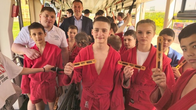 Юные самбисты поздравили с Днем защиты детей пассажиров "Верхнепышминского трамвая"