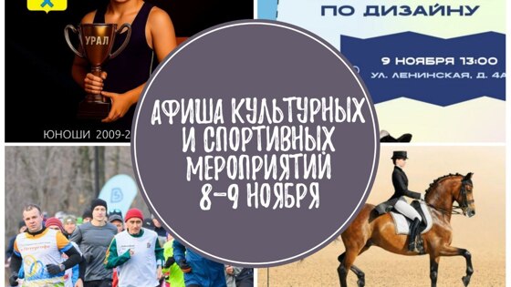 09:00 – присоединяйтесь к спортивному забегу «5 верст» в парке «Березка». Дистанция – 5 км. Сбор участников в 08:30. Вход в парк со стороны ул. Транспортная, 2г. (6+) 10:00 – болеем за участников муниципальных конных соревнований, посвященных Дню народного единства. Место проведения: конноспортивный комплекс «Дубровский». (6+) 10:00 – первенство города по вольной борьбе на призы фракции «Единая Россия» пройдет в спортивной школе олимпийского резерва № 4 «Урал» (6+) 12:00 – Зауральная роща приглашает на соревнования по спортивному туризму (пешеходные дистанции). (6+)