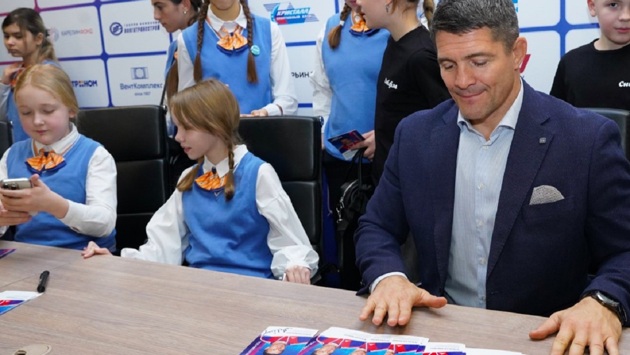 После беседы олимпийские чемпионы Алексей Мишин и Игорь Лавров раздали юным журналистам автографы.