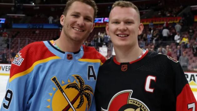 Хоккеисты Мэттью и Брэди Ткачуки сделали совместное фото с фигуристом Ильёй Малининым