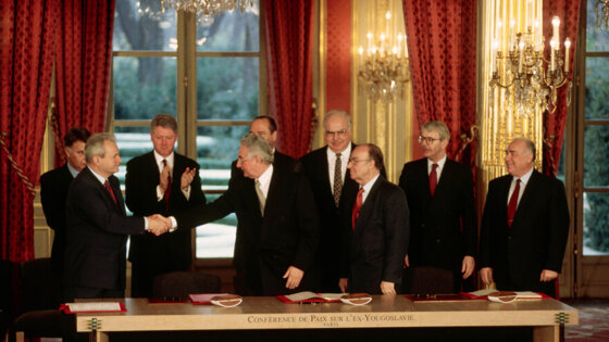 Ранее, 21 ноября 1995 года, документ был парафирован на военной базе в Дейтоне (штат Огайо). Соглашения поставили точку в кровопролитной Боснийской войне в период 1992—1995 годов и послужили основой конституционного устройства независимой Боснии.