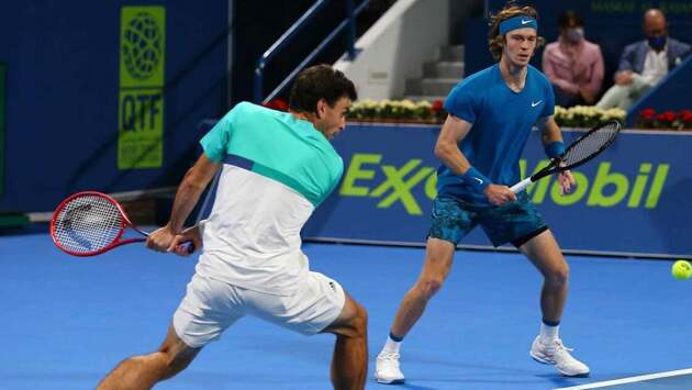 Российские теннисисты Андрей Рублев и Аслан Карацев в финале турнира в Дохе одолели новозеландца Маркуса Даниэла и австрийца Филиппа Освальда (7:5, 6:4).